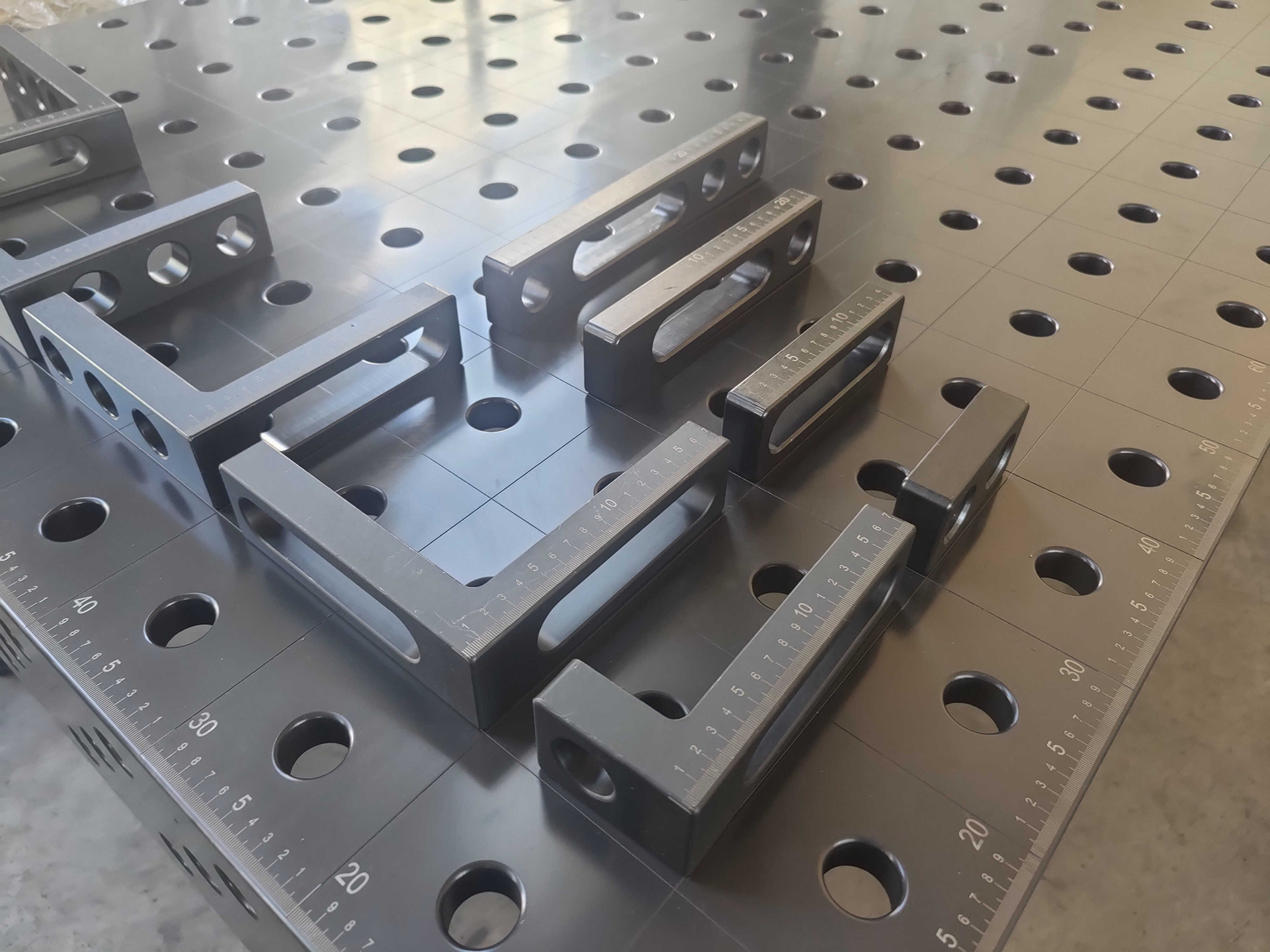 Three-dimensional flexible welding tooling is a set of pre-made standardized, systematic, universal module, all module connection, fixing and pressing are in the way of hole positioning and locking pin, module and module can be adjusted according to the size of the workpiece changes, the whole set of fixture combination can achieve the combination of three-dimensional space, this fixture features: Mainly used in welding products is ideal, so it is called three-dimensional flexible welding fixture.